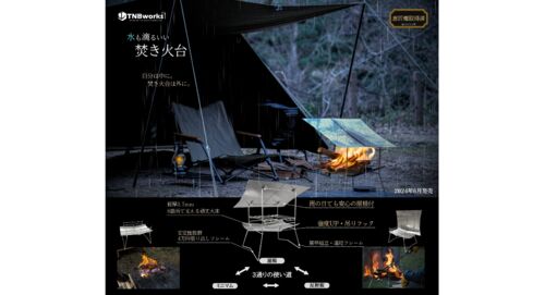 新発売!TNBworksの全天候型「焚き火台」が登場。雨の日でもキャンプやバーベキューを楽しめる屋根付きデザイン。ステンレス製で頑丈、組み立ても簡単。詳細と購入はAmazonと公式ECサイトで。